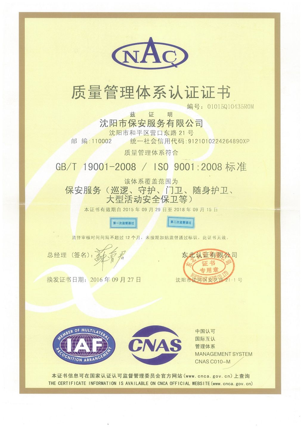 沈陽市保安服務有限公司于1999年11月由遼寧省公安廳批準成立,是沈陽市一家大型專業化國有保安服務機構,公司為中國保安協會、遼寧省保安協會和沈陽市保安協會常務理事單位。